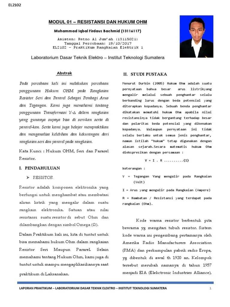 Laporan Hukum Ohm / Laporan Praktikum Hukum Ohm Pdf - Biologi c / 2 kelompok .